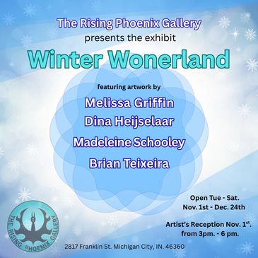 Join us at The Rising Phoenix Gallery for Winter Wonderland, an enchanting exhibit celebrating the beauty of the season. Open to all mediums, the show explores the magic of winter.